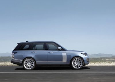 O novo e eficiente veículo elétrico híbrido plug-in Range Range Rover P400e (PHEV) combina um motor a gasolina Ingenium de quatro cilindros de 2.0 litros 300PS (221kW) com um motor elétrico de 116PS (85kW). A saída de energia disponível total 404PS (297kW) é capaz de atingir de 0-60 mph em 6,4 segundos (0-100 km/h em 6,8 segundos) e uma velocidade máxima de 137mph (220 km/h). Graças ao seu powertrain eletrificado, o Range Rover P400e possui um alcance de até 31 milhas (51 km) no modo veículo elétrico (EV). A bateria de íons de lítio pode ser totalmente carregada em apenas 2 horas e 45 minutos.