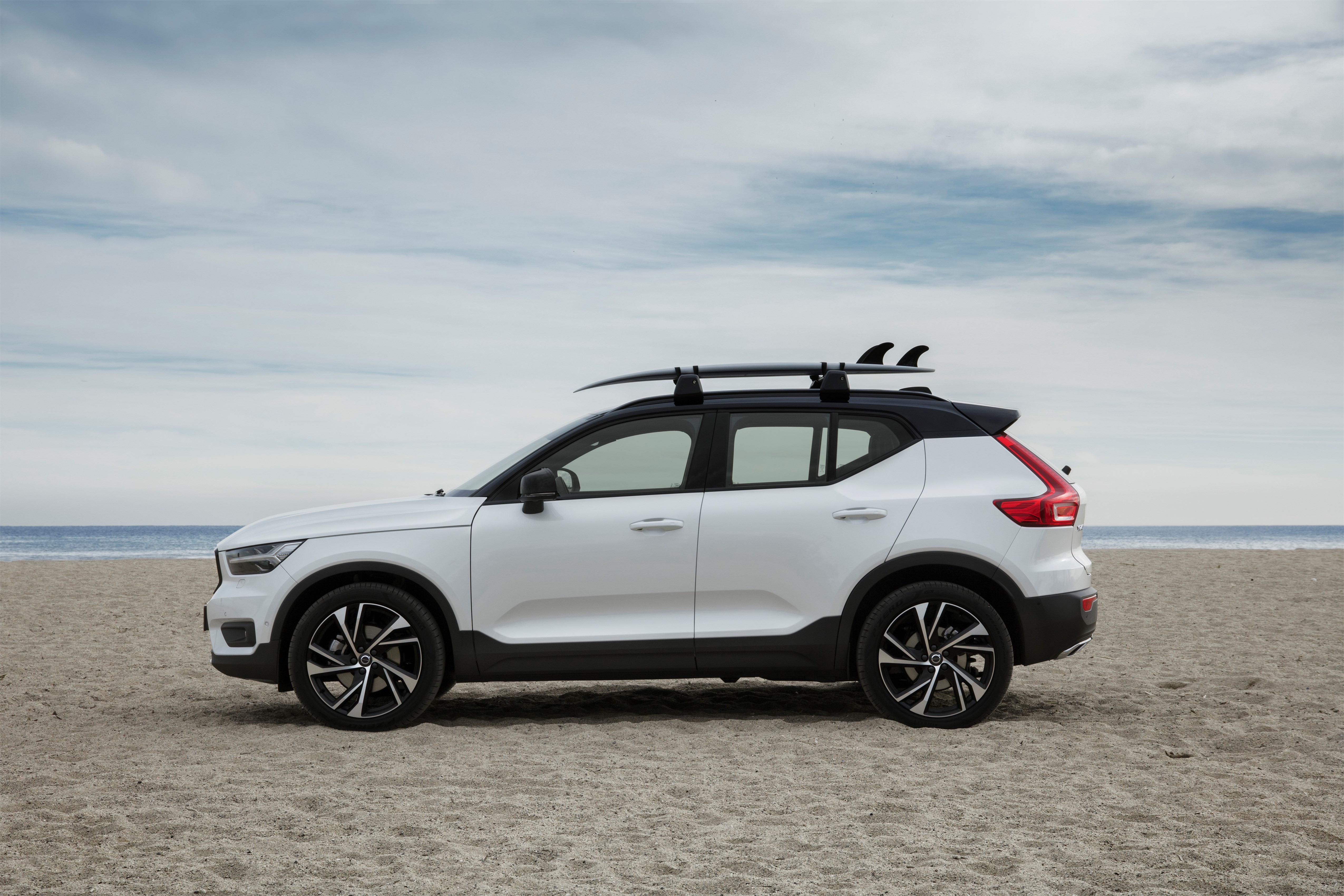 Na traseira, a lanterna característica se identifica com os novos SUVs da Volvo. Com feixes de LED, o conjunto ótico elevado apresenta um desenho marcante que invade a lateral da carroceria. O caráter jovial do modelo é expressado também pela cor do teto, diferente da carroceria na versão R-Design, e pelas barras de teto de alumínio.