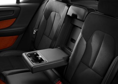 O interior do XC40 tem uma abordagem radicalmente nova para os porta-objetos. O engenhoso design de interiores oferece espaço de armazenamento mais funcional nas portas e sob os assentos, espaço especial para smartphones (com carregamento indutivo), um gancho para sacolas pequenas no porta-luvas e uma lixeira removível no túnel do console central.